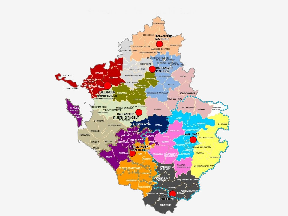 Repartidos en nuestras 7 agencias, nuestros vendedores están disponibles para realizar demostraciones de materiales y garantizarle un buen uso de estos productos. Más allá de la venta, la financiación es un aspecto ineludible de nuestro negocio. Nuestros equipos se informan regularmente sobre las mejores soluciones disponibles.Estamos presentes en los cantones de los departamentos de Charente, Charente-Maritime, Deux-Sèvres y Vendée.
